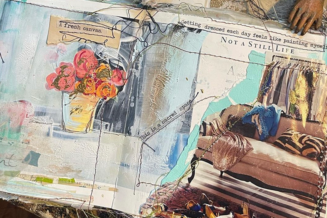 I'd love for you to join me at my cottage studio. In each workshop, I share my creative process and how I let the words and art come out of me through playing on the pages of altered books that are my canvas. My studio is a safe space for you to explore. The workshops are intimate, relaxing, and healing...