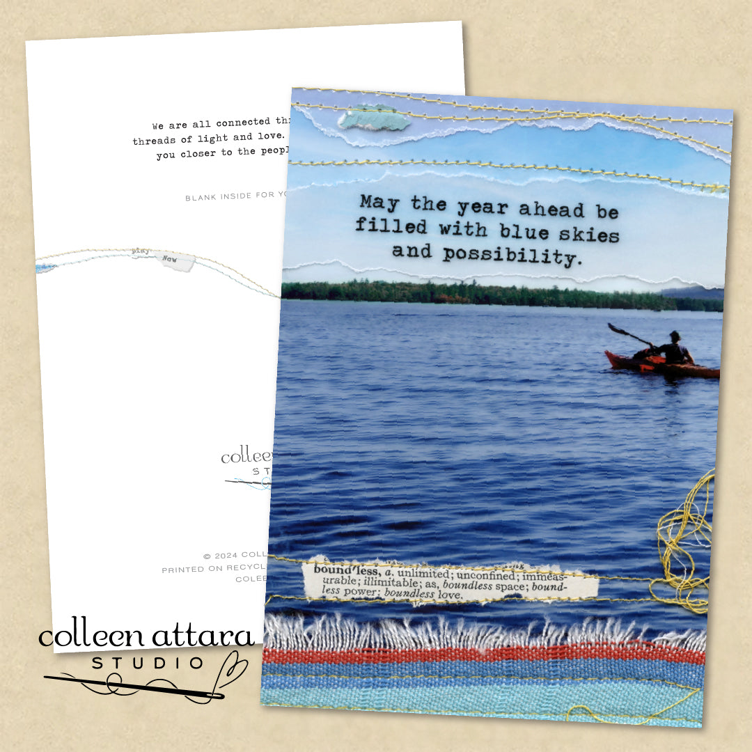 “May the year ahead be filled with blue skies and possibility."An archival reproduction of my original mixed media art.