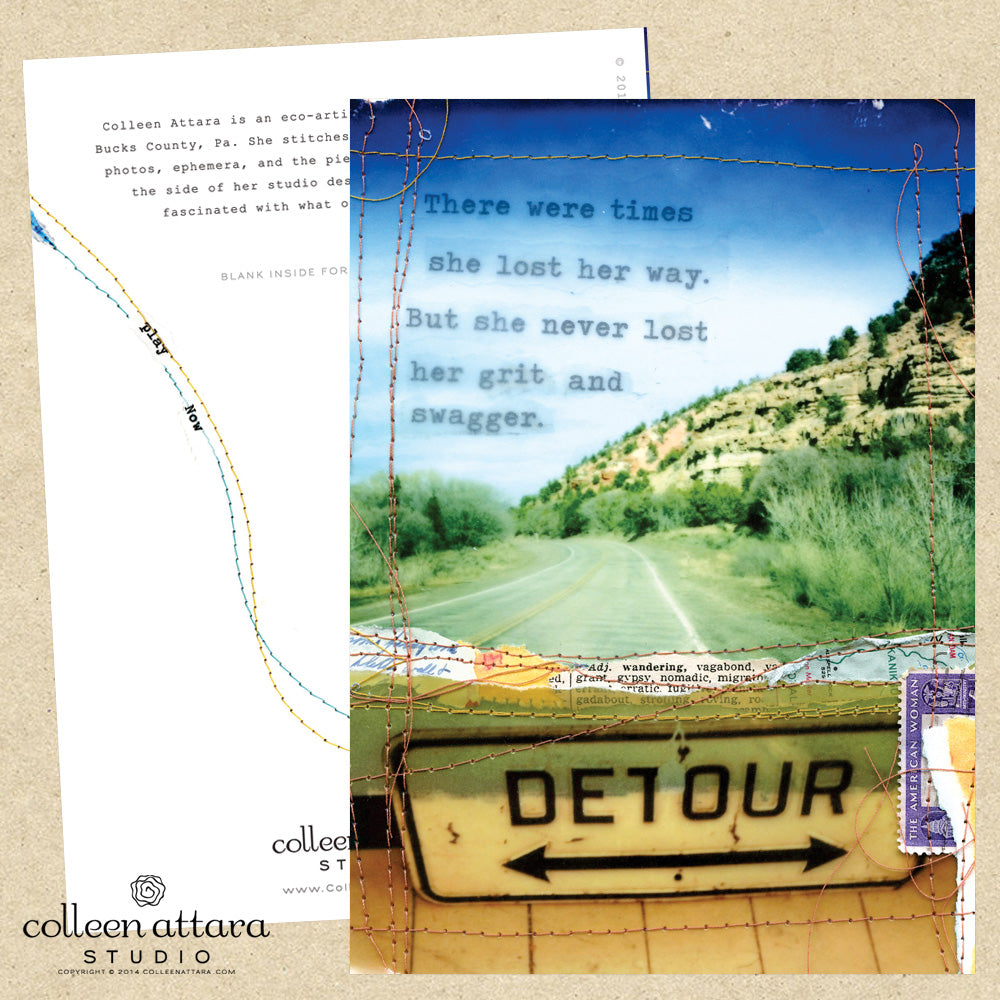 The original artwork is created from sewing separate photographs, painted bits of paper, ephemera, and my words together. These words have been inside me forever. Some are new and others have been a part of letters and journals written long ago. Enjoy. xo.