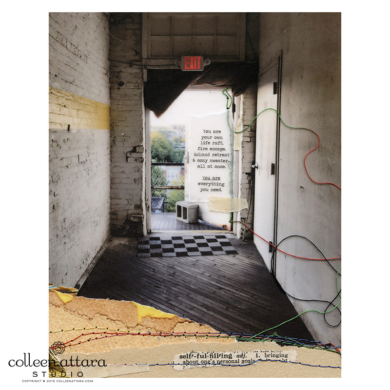 The original artwork is created from sewing separate photographs, painted bits of paper, ephemera, and my words together. These words have been inside me forever. Some are new and others have been a part of letters and journals written long ago. Enjoy. xo.