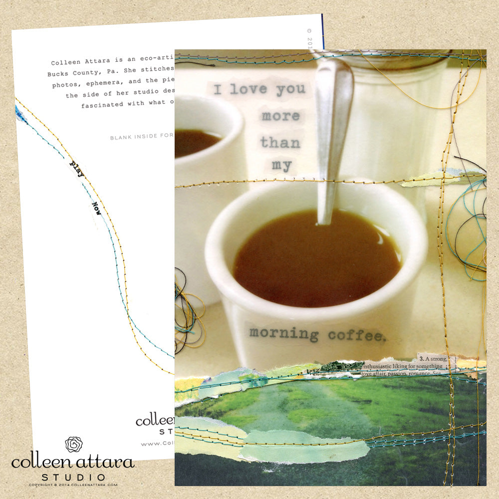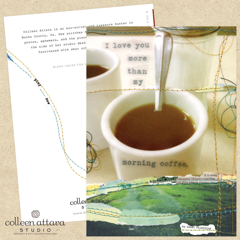 The original artwork is created from sewing separate photographs, painted bits of paper, ephemera, and my words together. These words have been inside me forever. Some are new and others have been a part of letters and journals written long ago. Enjoy. xo.